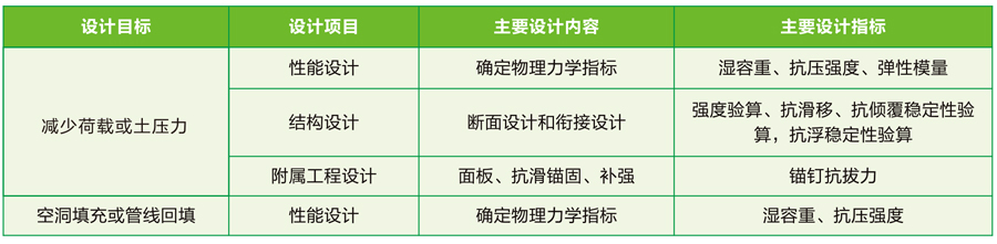 氣泡混合輕質土用于結構頂板回填、地下車站頂部回填、地基基礎減荷、隧道注地下空洞注漿時,抗壓輕度按設計要求確定。