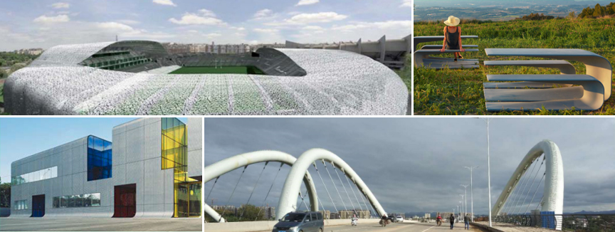 UHPC堪稱耐久性最好的工程材料,適當(dāng)配筋的UHPC力學(xué)性能接近剛結(jié)構(gòu),同時(shí)UHPC具有優(yōu)良的耐磨、抗爆性能。因此,UHPC特別適合用于大跨徑橋梁、抗爆結(jié)構(gòu)(軍事工程、銀行金庫等)和薄壁結(jié)構(gòu),以及用在高磨蝕、高腐蝕環(huán)境。目前,UHPC已經(jīng)在一些實(shí)際工程中應(yīng)用,如大跨徑人行天橋、公路鐵路橋梁(實(shí)例見表3)、薄壁筒倉、核廢料罐、鋼索錨固加強(qiáng)板、ATM機(jī)保護(hù)殼等。